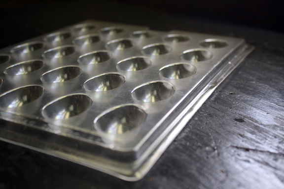 An egg shaped plastic candy making tray.
