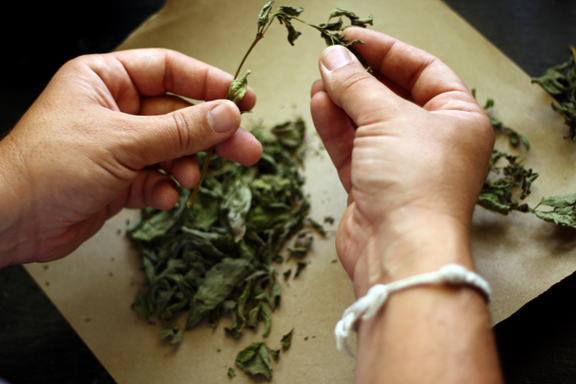 Ever so carefully, sprig by sprig, he plucked the fragrant leaves off of the stem…