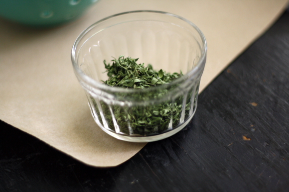 Next, spread the herbs out into a single layer on top of wire rack, pop the pan (or pans) into the oven (that isn’t turned on) and let sit for 2-3 weeks. You may want to leave yourself & other family members, a reminder note about the herbs being in the oven…remember, burned herbs = not good.