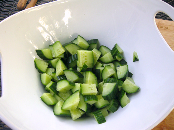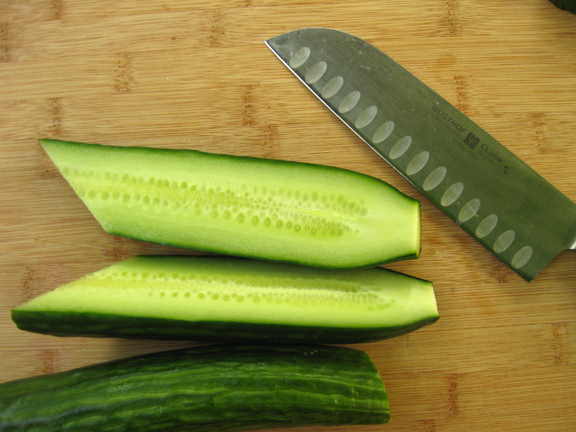 I started with the cucumbers, I left the skin on because the English cucumbers have a thin skin that isn’t bitter.