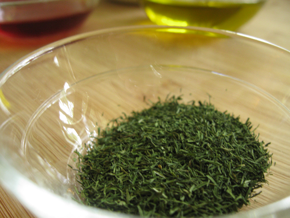 Then sprinkle a few healthy pinches of your secret ingredient, dried dill and some salt & pepper and toss!