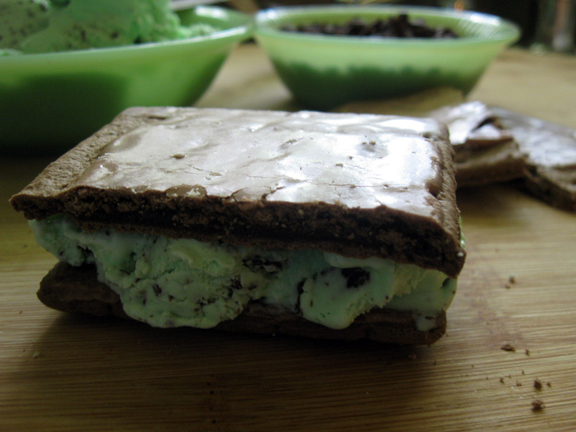 Our second decadent combination was mint chocolate chip ice cream between chocolate fudge pop-tarts finished off with mini chocolate chips on the edges.