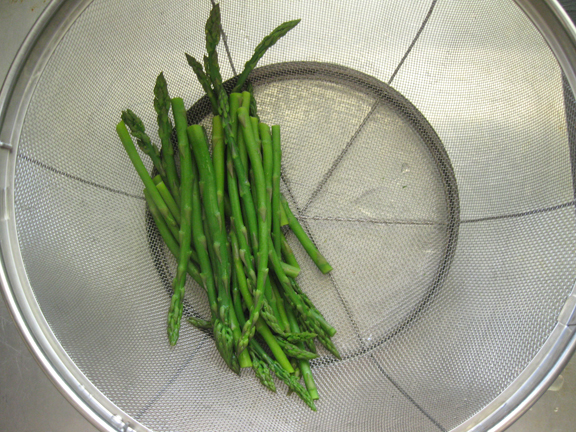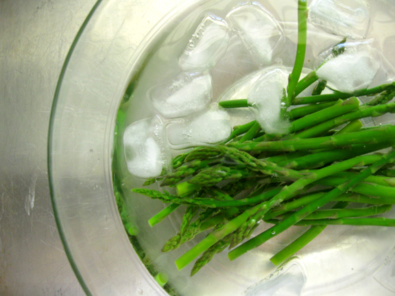bring the water to a full boil and cook the asparagus until tender, about 3-4 minutes.
